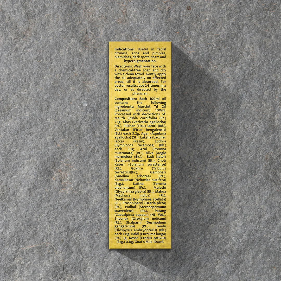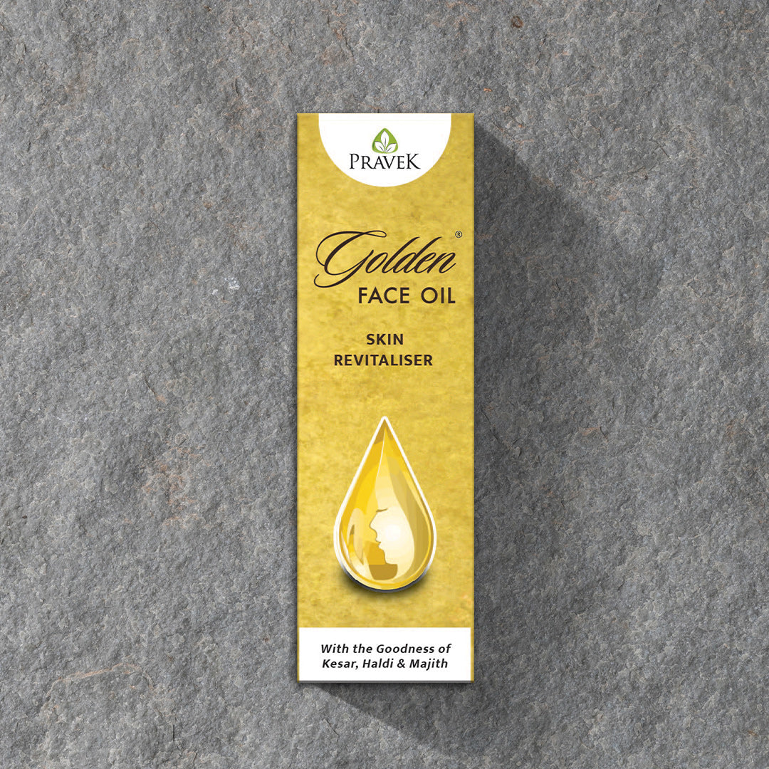 A combination of herbs that helps manage multiple skin problems and restores facial glow, by nourishing the skin from within. Pravek Golden Face Oil is processed in Purified Sesame Oil.