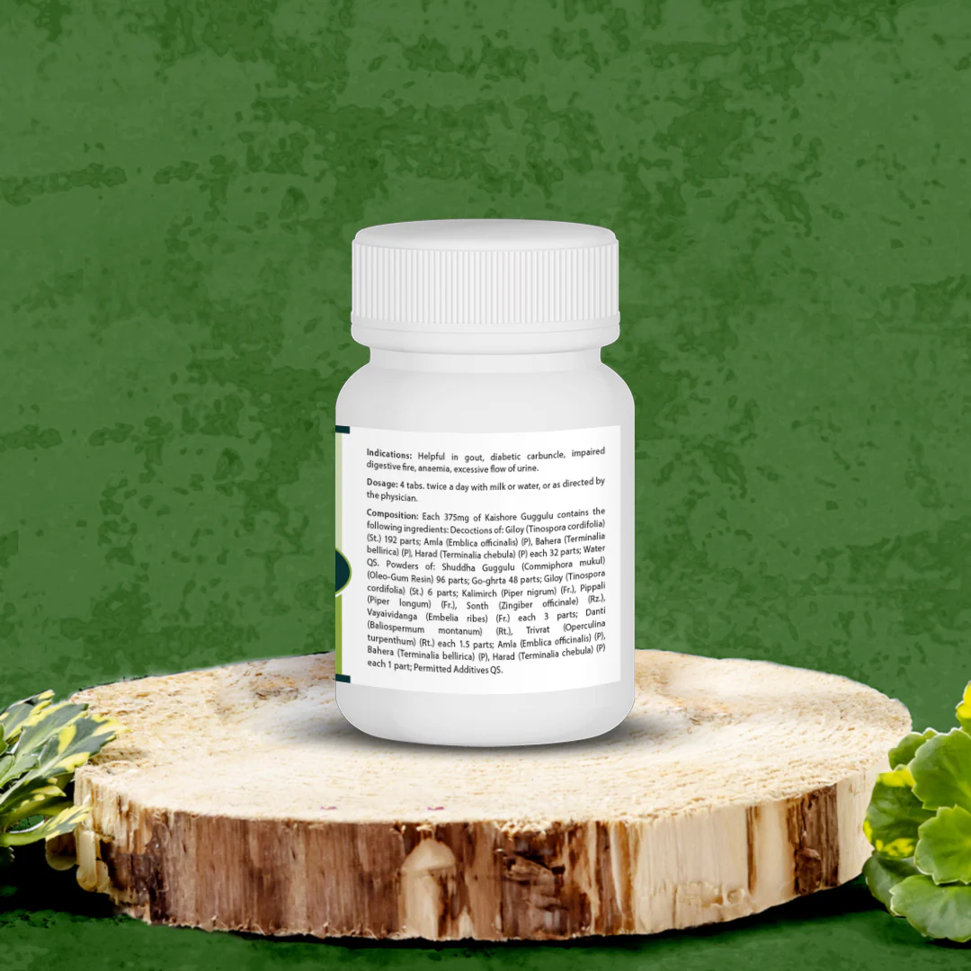 Kaishore Guggulu is effective for those who suffer from joint pain and edema, especially in the case of gout. Such conditions occur due to an imbalanced Vata Dosha and Kaishore Guggulu provides relief due to its Vata balancing property. It is also beneficial in certain blood disorders like anemia. Kaishore Guggulu also helps manage diabetes, indigestion, constipation and cough.
