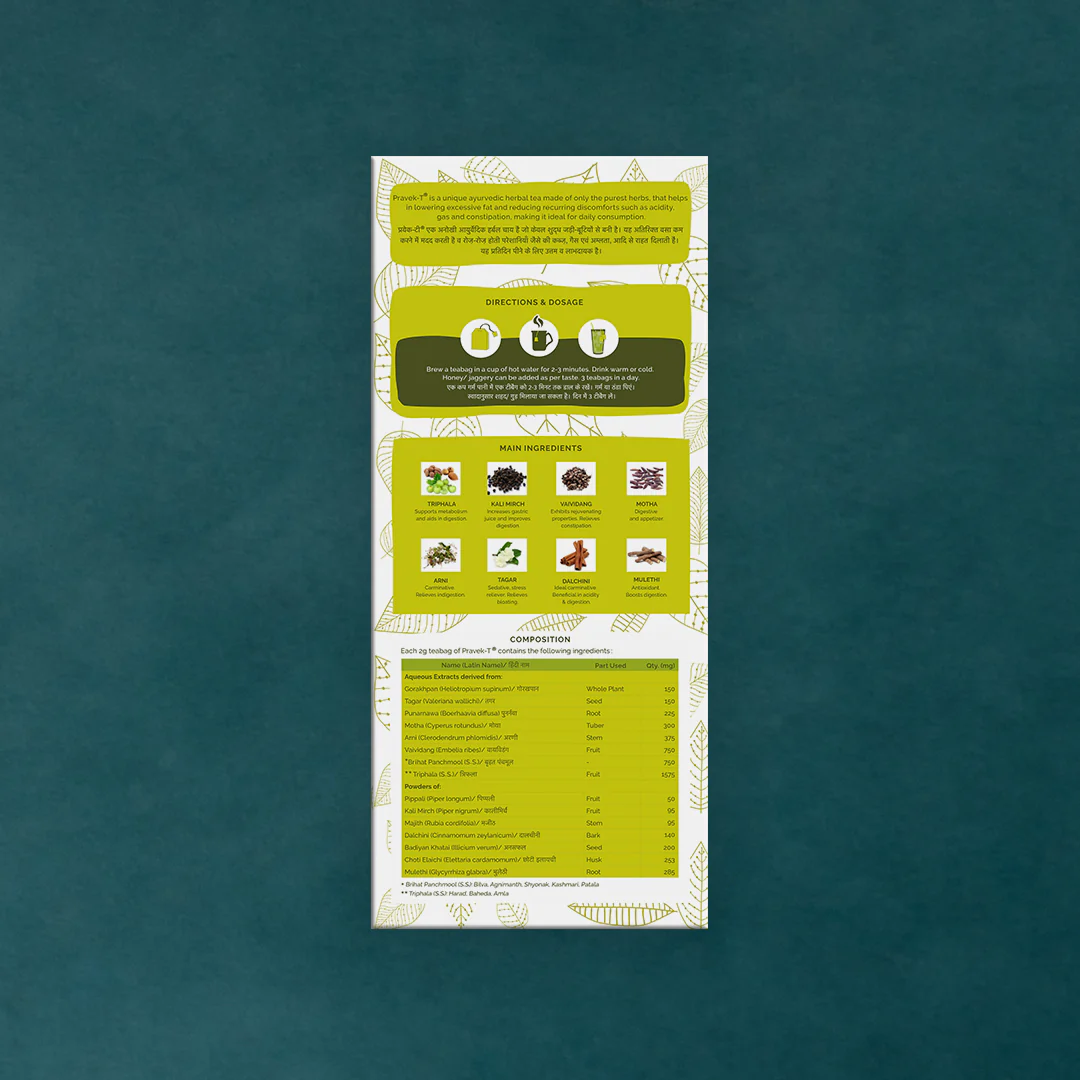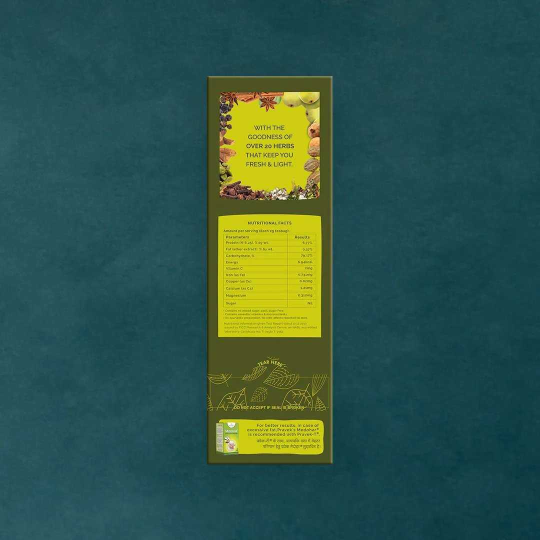 Pravek-T is a sugar-free ayurvedic blend of over 20 pure herbs. Its special formula helps in Medorog, boosts metabolism, reduces acidity, corrects constipation, and has essential vitamins & micronutrients. For better results, and in case of excessive fat, Pravek’s Medohar® is recommended along with Pravek-T®.