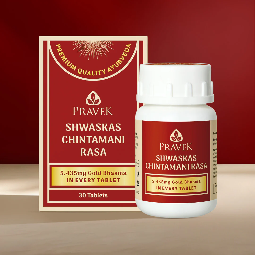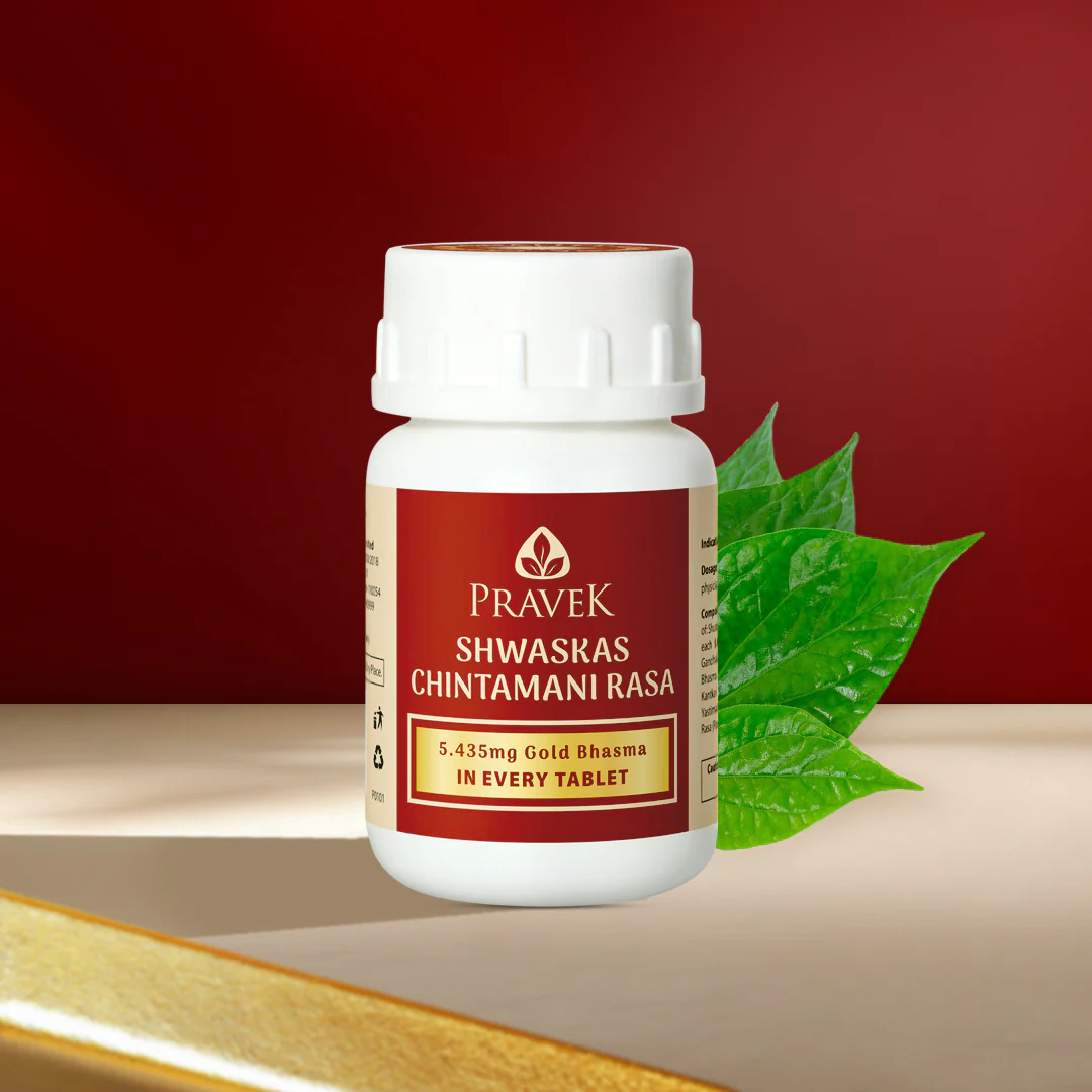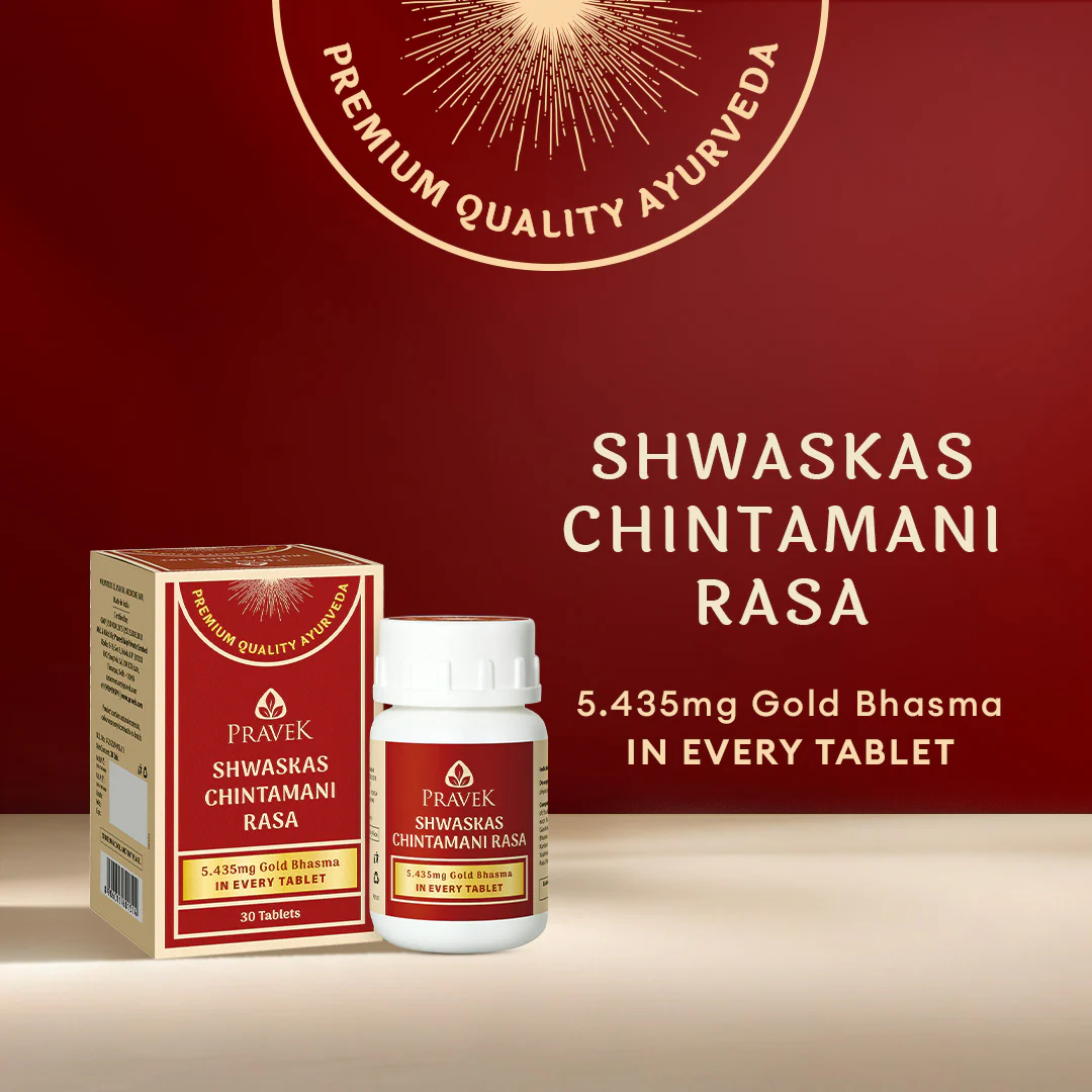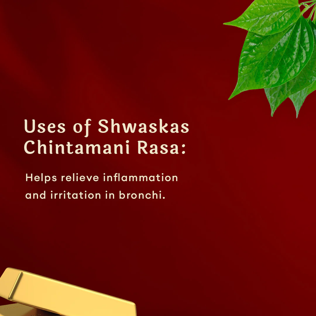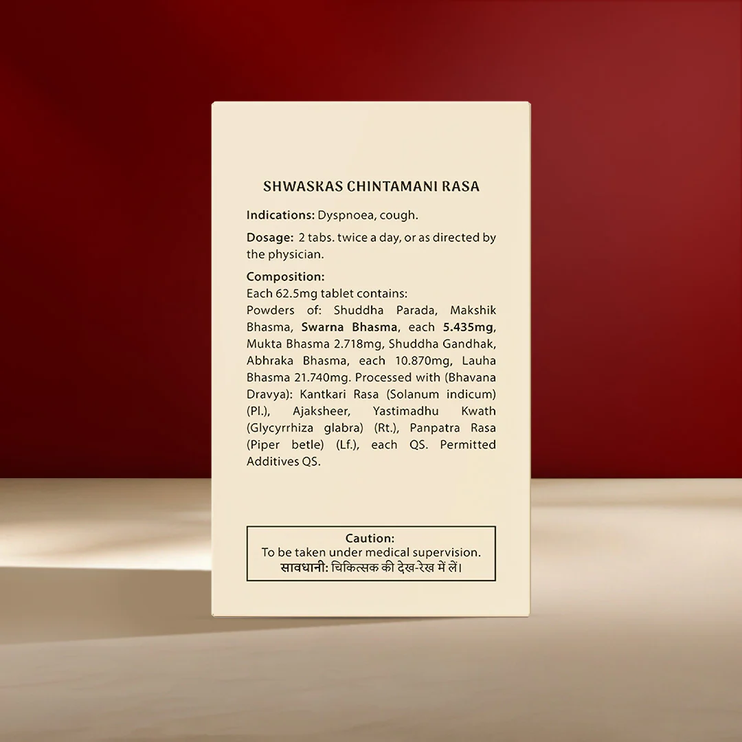 Shwaskas Chintamani Rasa is a classical ayurvedic remedy made with Bhasma or Ash, after an elaborate process of purification. Each tablet containing 5.435 mg of Swarna Bhasma, purified gold, has the following benefits: