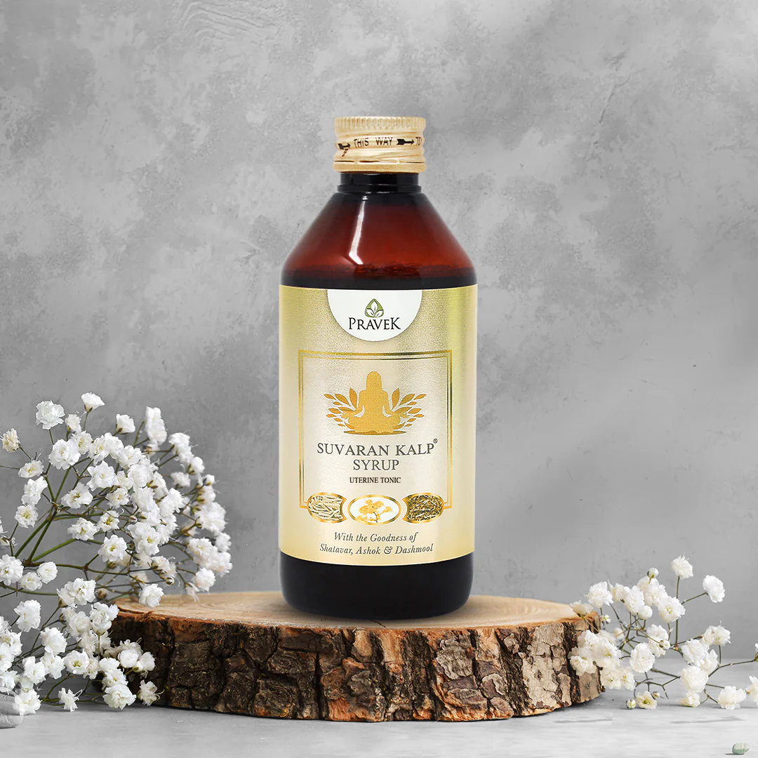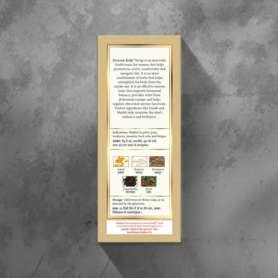 Suvaran Kalp Syrup is a uterine stimulant that helps in menstrual irregularities & PMS. This syrup also helps in gynaecological disorders and stimulates ovarian tissues.