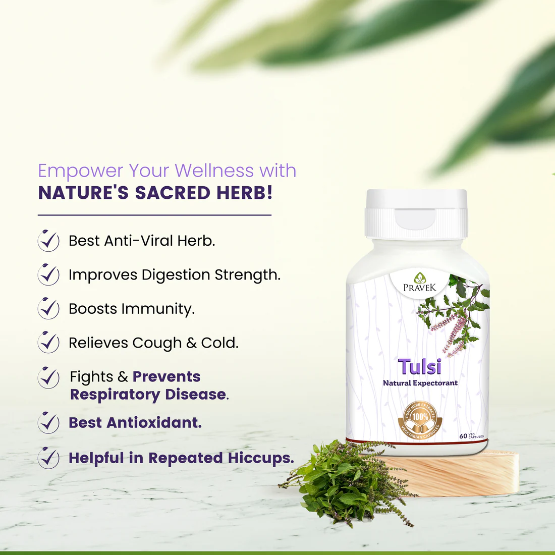 Tulsi is helpful in maintaining good respiratory health due to its Rasayana property. Other health benefits of Tulsi Capsules are: