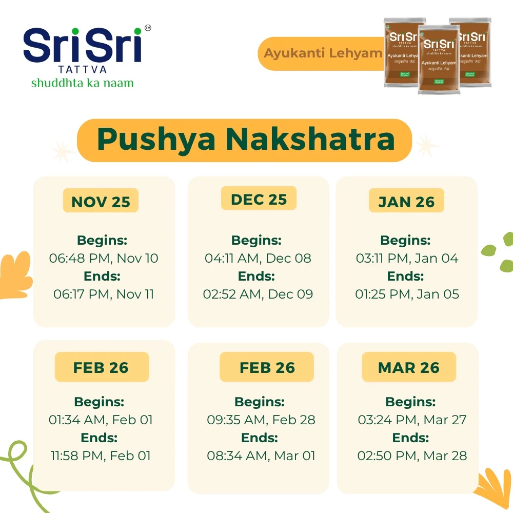 According to manufacturers and product listings, this lehyam is a herbal extract typically mixed with honey. Key botanicals include: The Desi Food The Desi Food Brahmi & Shankhapushpi: Associated with mental sharpness, clarity, and emotional balance. Ashwagandha: Traditionally used for physical strength and resilience. Amla (Indian Gooseberry): A potent source of Vitamin C for general immunity. Suvarna Bhasma (Gold Calx): Included in classical formulations for its restorative properties. Big Value Shop Big Value Shop +4 Dosage and Usage Traditional practice suggests administering this supplement on Pushya Nakshatra day (an auspicious day in the lunar calendar occurring once a month) for maximum effectiveness. Sri Sri Tattva Sri Sri Tattva Children (5–16 years): 1 sachet (approx. 5.5g) mixed with one sachet of honey monthly. Infants/Children (6 months–5 years): 1–2 drops of lehyam mixed with 3–4 drops of honey monthly.