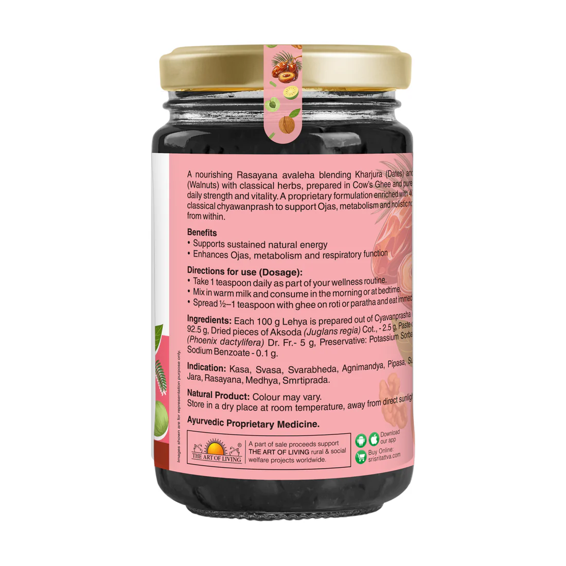 Immunity & Vitality: Enriched with over 40 classical herbs, it helps protect against seasonal infections and enhances "Ojas" (vital energy). Energy & Stamina: Dates and walnuts provide natural, sustained energy, making it helpful for combatting fatigue and weakness. Metabolism & Digestion: Supports the digestive system, aiding in better nutrient absorption and metabolic balance. Respiratory Support: Aids in maintaining clear airways and healthy lung function. Sri Sri Tattva Sri Sri Tattva Directions for Use According to Sri Sri Tattva, the following methods are recommended for consumption: Directly: Take 1 teaspoon daily as part of a wellness routine. With Milk: Mix 1 teaspoon into warm milk and consume in the morning or before bedtime. With Food: Spread ½ to 1 teaspoon with ghee on roti or paratha for immediate consumption.