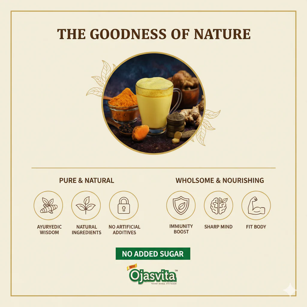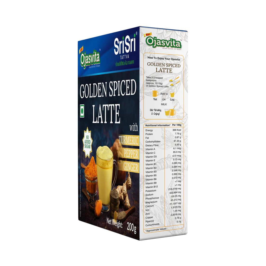 Sri Sri Tattva Ojasvita Golden Spiced Latte is a health drink mix containing turmeric, pepper, and ginger, designed to boost immunity and respiratory health. This 200 g powder is typically used by mixing with hot or cold milk and is noted for its no-added-sugar formulation. BigBasket BigBasket Key Benefits & Ingredients This latte mix is formulated based on Ayurvedic principles to provide a "Golden Latte" or turmeric milk experience. Turmeric & Pepper: Turmeric acts as a natural antimicrobial and anti-inflammatory agent. The inclusion of pepper significantly enhances the body's absorption of curcumin, the beneficial component of turmeric. Ginger: Provides protection against cough and cold and supports overall respiratory health. Immunity & Energy: According to srisritattva.com, the drink is intended to build immunity, increase stamina, and rejuvenate the body system. Taste Profile: It features a "yummy" taste derived from malt and cocoa, making it a palatable health supplement for daily use.