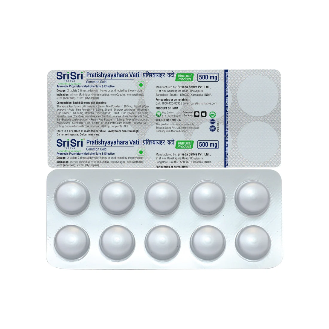 According to Ayurmedinfo and Truemeds, the 500 mg tablets contain a blend of traditional Ayurvedic herbs: ayurmedinfo.com ayurmedinfo.com +2 Pippali (Long Pepper): Enhances respiratory function and acts as an expectorant. Sunthi (Dry Ginger): Known for its warming properties that ease congestion and throat irritation. Maricha (Black Pepper): Offers anti-inflammatory benefits to clear mucus. Sharkara (Sugar): Acts as a natural carrier for the herbal components. Additional Herbs: Includes Ela (Cardamom), Twak (Cinnamon), and Vamsalochana (Bamboo) for overall respiratory balance. ayurmedinfo.com ayurmedinfo.com Recommended Dosage Dosage may vary based on age or medical advice. Common guidelines include: Adults and Children Over 12: Typically 2 tablets twice or thrice daily, preferably after meals. Children (6–12 Years): Often recommended as 1 tablet twice a day. Best Taken With: Reviewers on Amazon.in and Truemeds suggest taking it with honey or lukewarm water for better absorption.