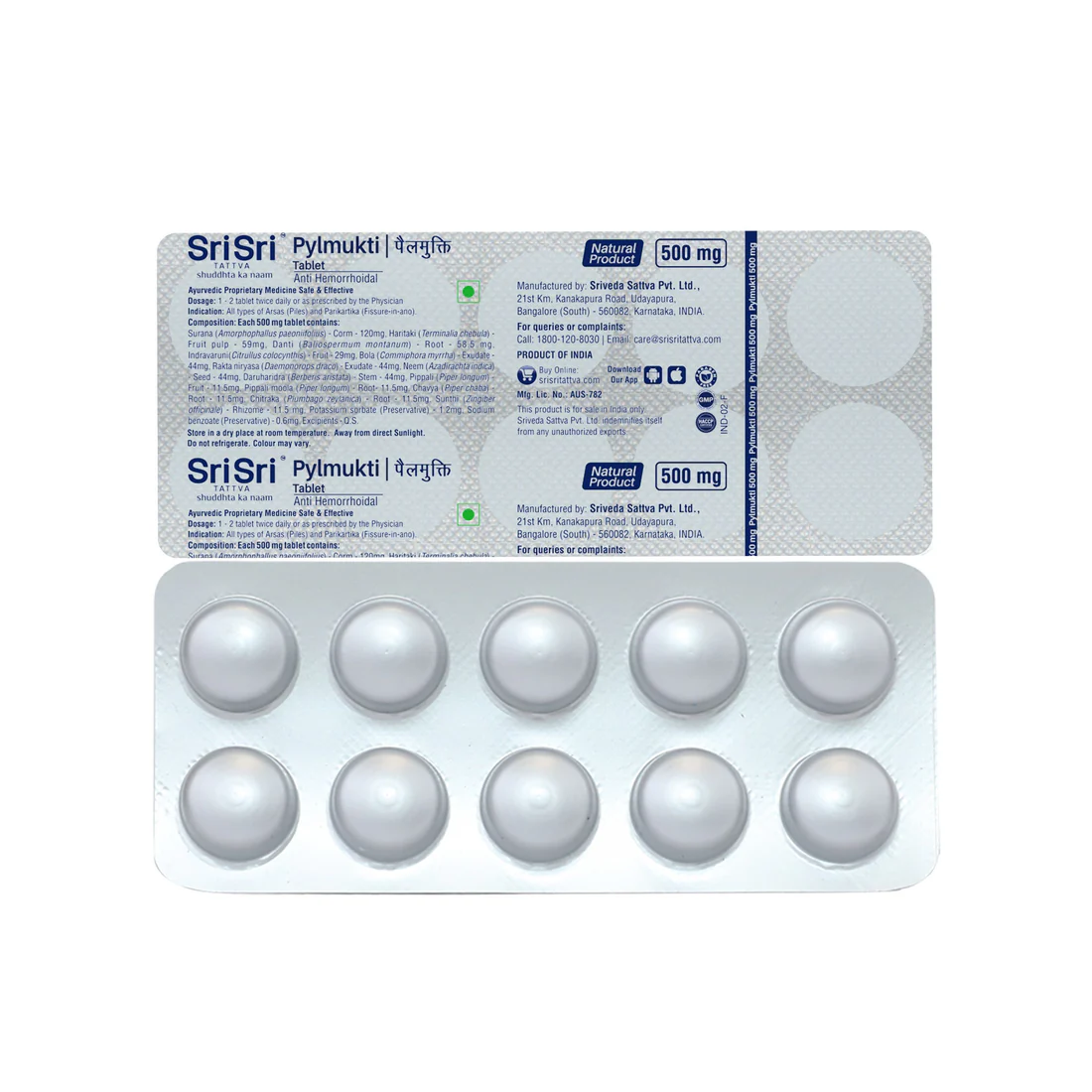 Sri Sri Tattva Pylmukti Tablet is an Ayurvedic proprietary medicine formulated to manage internal and external piles (hemorrhoids) and anal fissures by shrinking the pile mass and controlling bleeding. Naturefit Naturefit +2 Key Benefits & Use Cases This natural formulation targets the root causes of hemorrhoidal discomfort and is primarily used for: Hemorrhoid Relief: Specifically designed to help shrink pile mass and reduce associated swelling. Bleeding Control: Contains anti-hemorrhagic herbs like Bola and Danti that help stop bleeding during bowel movements. Symptom Management: Helps alleviate pricking pain, soreness, itching, and burning sensations in the anal region. Digestive Support: Acts as a mild laxative to ease constipation and promote smooth bowel movements, reducing the strain that worsens piles.