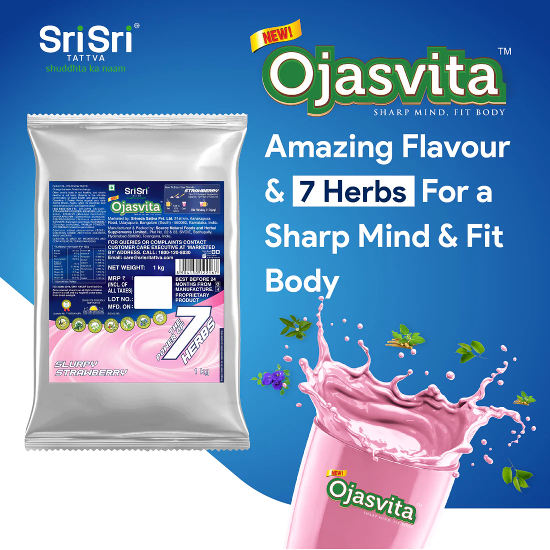 Sri Sri Tattva Strawberry Ojasvita is an Ayurvedic health drink mix formulated with seven "power herbs" to support mental fitness and physical vitality. It is designed to be mixed with milk and is suitable for both children and adults. Sri Sri Tattva Sri Sri Tattva Key Benefits Mental Fitness: Formulated to enhance memory and support a "sharp mind". Physical Health: Aims to build immunity, increase energy levels, and provide essential nourishment for a "fit body". Body Rejuvenation: Helps in rejuvenating the body system and aiding digestion.