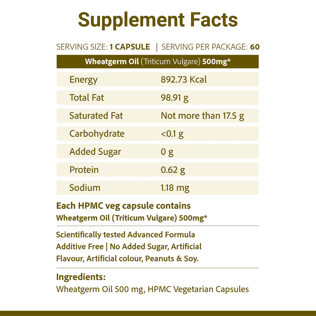 Full Product Name: Sri Sri Tattva SupaSupp Wheat Germ Oil Vit - E Form: 60 Vegetarian Capsules (500 mg each). Key Ingredients: According to the manufacturer, each capsule contains 400 mg of Vitamin E and 100 mg of Wheat Germ Oil. Dietary Type: 100% vegan and gelatin-free. Sri Sri Tattva Sri Sri Tattva Usage & Safety Recommended Dosage: One capsule daily after food, or as directed by a physician. Precautions: Gluten Sensitivity: As it is derived from wheat, individuals with gluten intolerance or Celiac disease should consult a doctor before use. Medical Conditions: 1mg suggests those with heart disease or those on low-carb diets monitor intake due to the oil's calorie and triglyceride content.