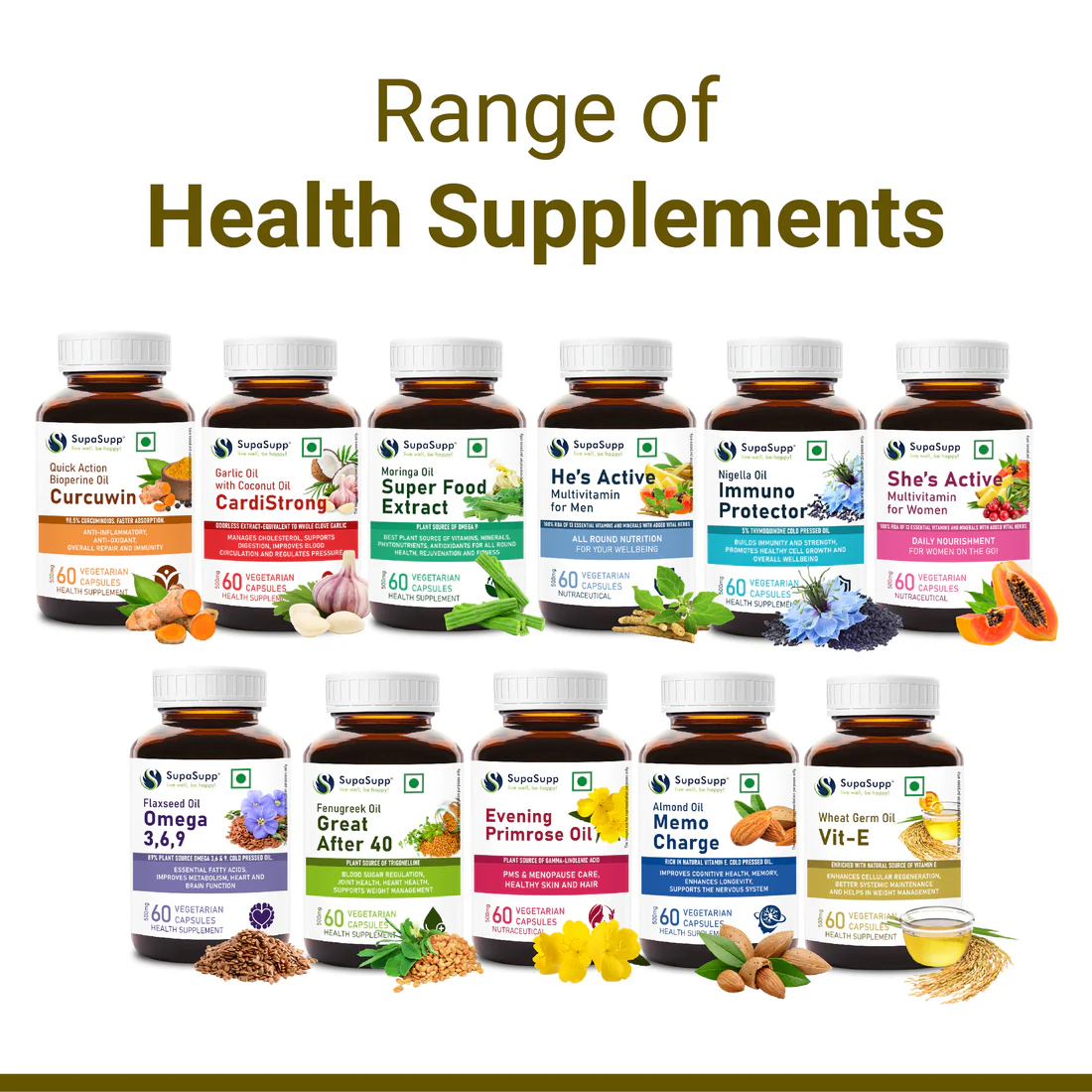 Sri Sri Tattva SupaSupp Wheat Germ Oil is a 100% vegan dietary supplement rich in Vitamin E, antioxidants, and essential fatty acids. It is primarily used to enhance cellular regeneration, support metabolic efficiency, and assist in weight management by promoting satiety and calorie burning. Sri Sri Tattva Sri Sri Tattva +3 Key Benefits Cellular Regeneration & Anti-Aging: The high Vitamin E and antioxidant content protects cells from oxidative damage, promoting faster skin cell regeneration and reducing fine lines. Weight Management: According to 1mg, the oil helps regulate biochemical pathways and improves cellular metabolism, which can assist in managing body weight. Its fibre content also promotes a feeling of fullness to reduce overeating. Stamina & Energy: It contains octacosanol, which is known to increase physical endurance and strength by streamlining energy production in the body. Muscle & Tissue Repair: Rich in omega fatty acids and plant-based proteins, it aids in maintaining healthy muscle tone and repairing damaged tissues. Systemic Maintenance: Supports cardiovascular health by regulating cholesterol levels and boosting overall immune system function.