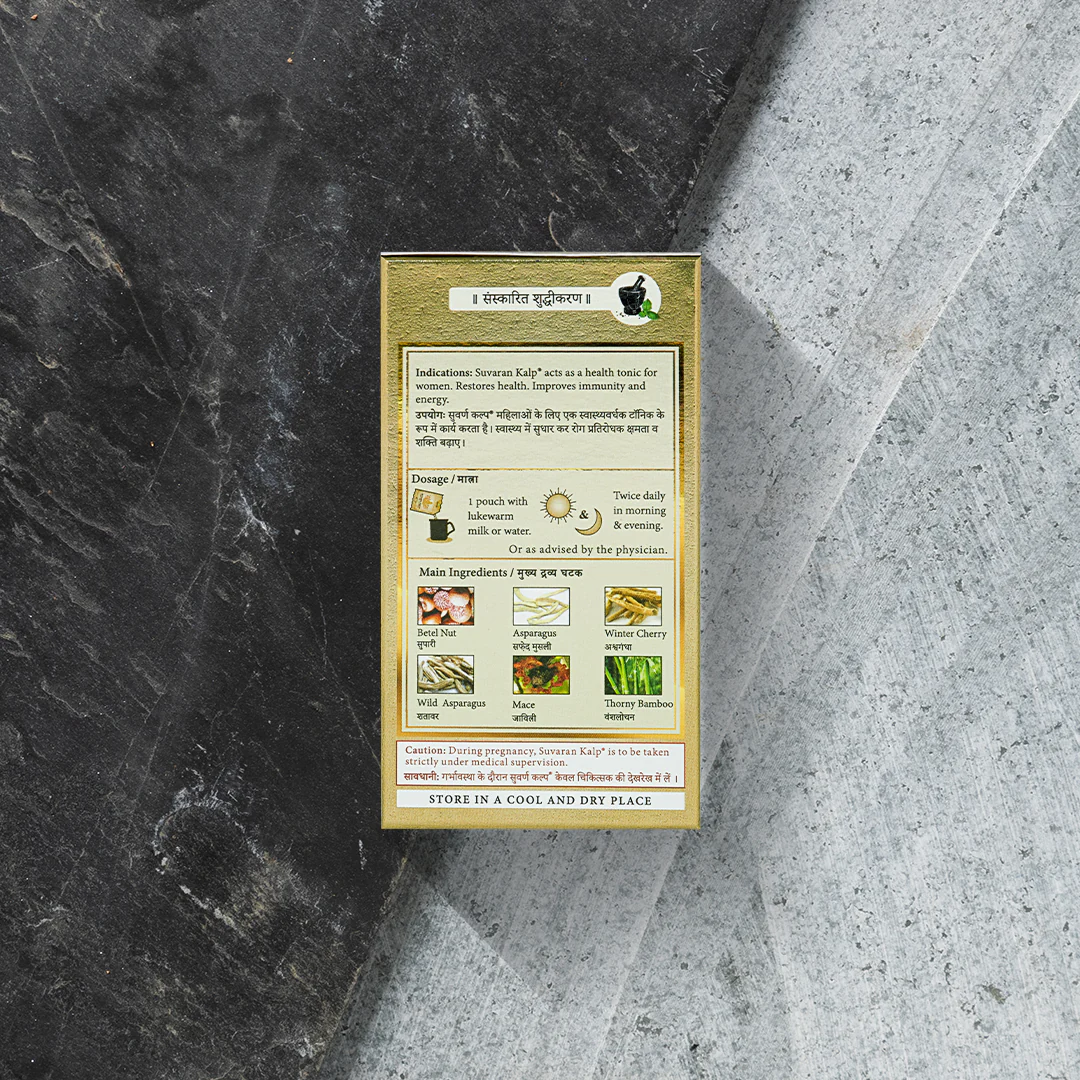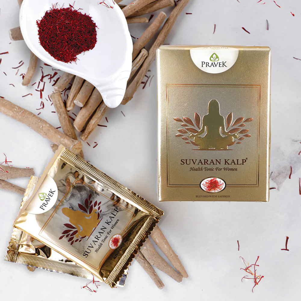 Suvaran Kalp is a wonderful Ayurvedic formulation which helps a female to manage certain gynaecological conditions like imbalanced menstrual cycles, post menopausal stage and leucorrhea. It is also beneficial in certain painful conditions like abdominal pain, pelvic pain and back pain. Suvaran Kalp helps reduce symptoms of anemia, improves appetite and enhance digestion. It is also very effcetive to lower stress hence provides releif in mental and physical fatigue.