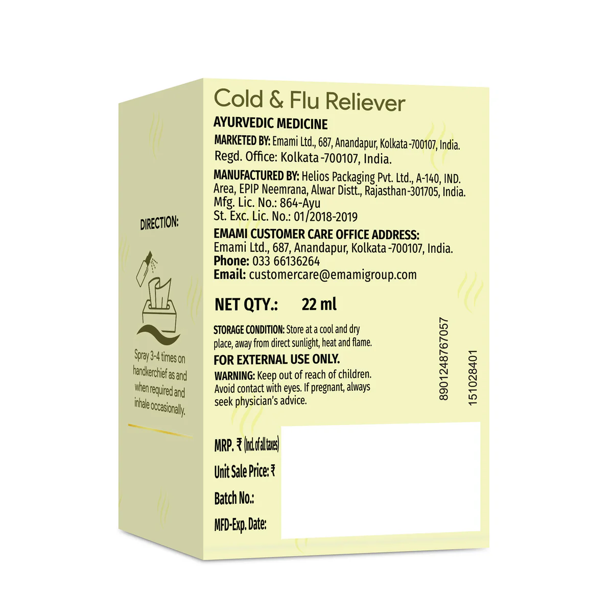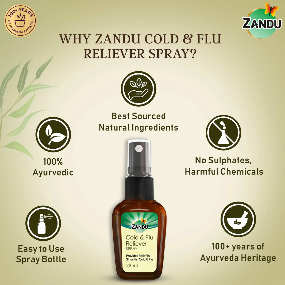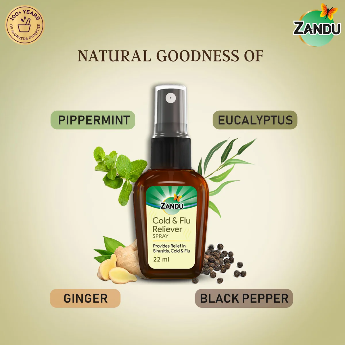 Zandu Cold & Flu Reliever Spray is not like ordinary nasal sprays. It is designed to have no side effects and provide long-lasting relief. Simply spray it on a handkerchief 3 to 4 times and keep inhaling it throughout the day. Developed by the Zandu Advanced Ayurvedic Research Centre, this product is backed by over 100 years of Zandu's history and legacy. The Cold & Flu Nasal Reliever Spray is a natural product with no added sulfates or harmful chemicals. Use our Cold & Flu Nasal nose block spray to get rid of sinusitis, cold, and flu.