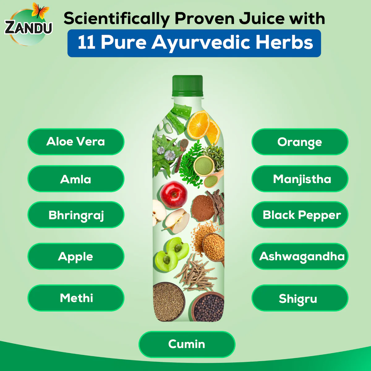 Zandu Hair Vitalizer Juice boasts a rich concoction of 11 Ayurvedic ingredients such as Bhringraj, Amla, Aloe Vera, Orange, Apple, Cumin, Methi, Manjishta, Shigru, and Ashwagandha. Together, these ingredients provide a comprehensive solution for all hair concerns. Developed by Zaarc (Zandu Advanced Ayurvedic Research Center), with over 110 years of Ayurvedic expertise, Zandu Hair Growth Juice embodies a legacy of trust and authenticity.