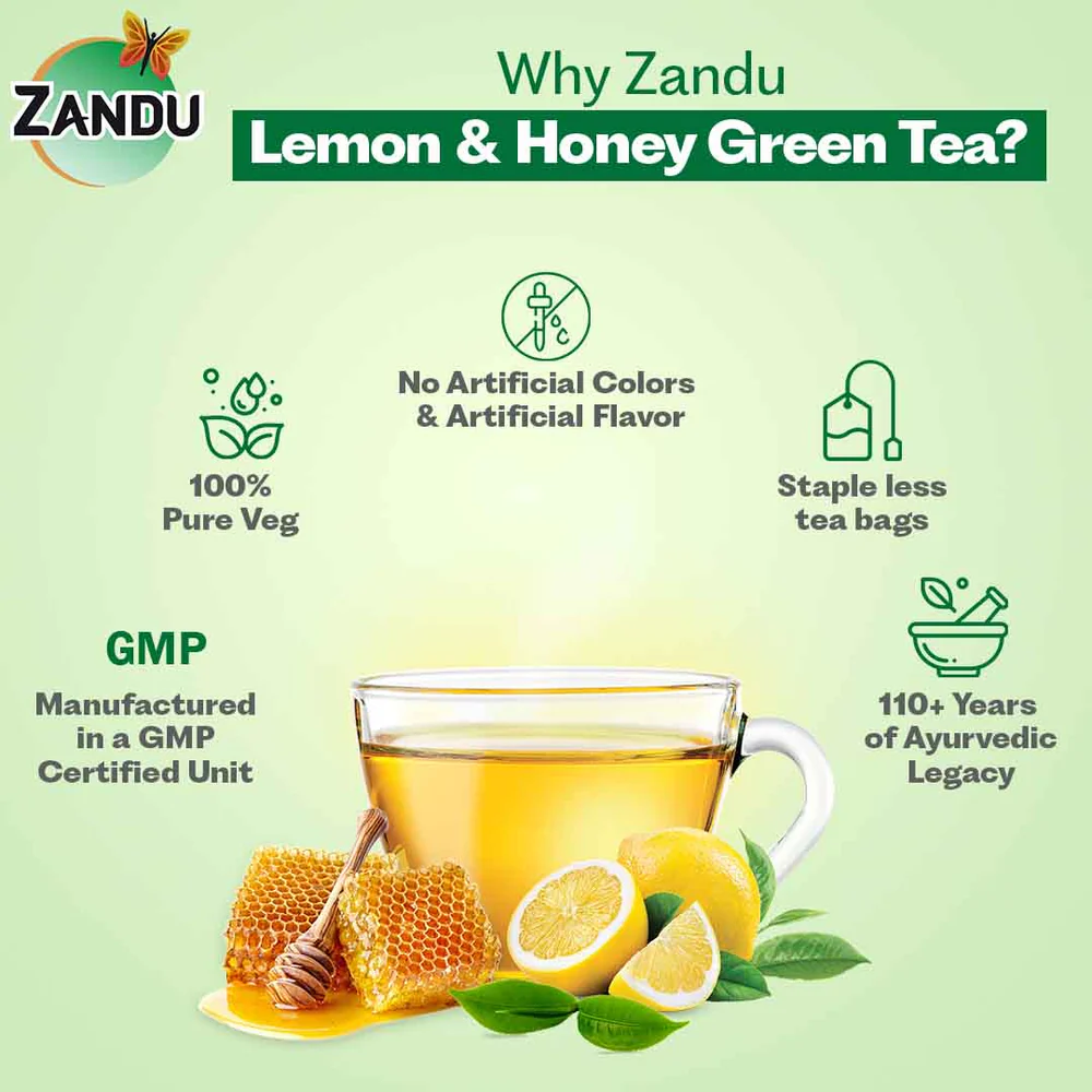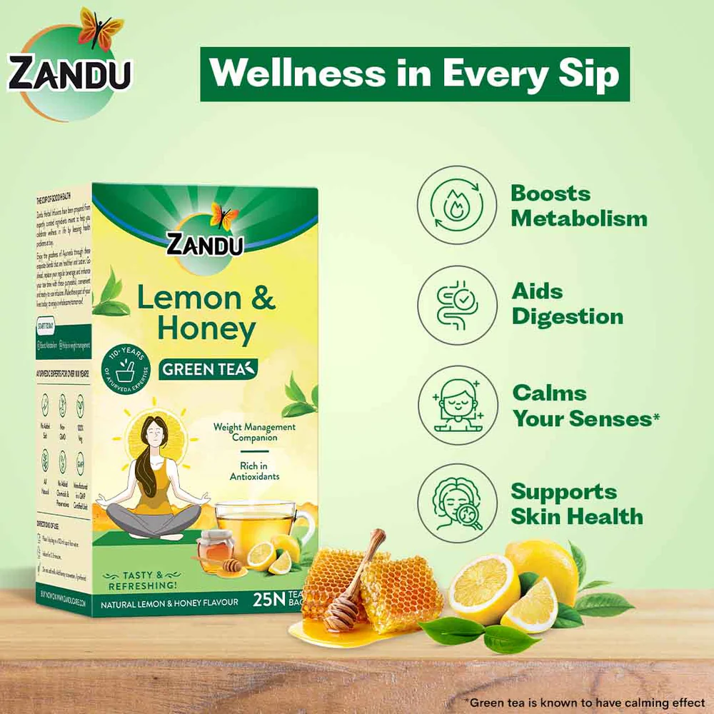 Zandu Lemon & Honey Green Tea is the perfect blend for rejuvenation and taste. Specially selected ingredients of this refreshing drink is not just a delightful taste ; it also support healthy weight management by aiding metabolism. Rich in antioxidants, this green tea helps combat free radicals, promoting overall wellness. The natural sweetness of honey combined with the zesty flavor of lemon enhances your tea experience while providing essential nutrients. Enjoy Zandu Lemon & Honey Green Tea as part of your daily routine for a revitalizing boost that nourishes your body and uplifts your spirit.