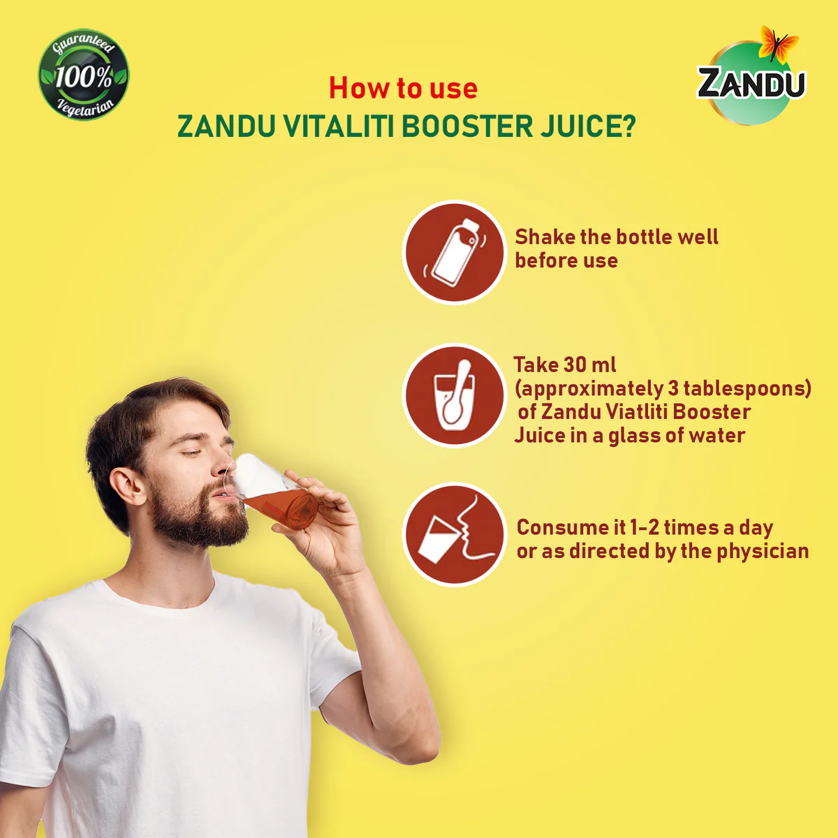 Developed by the experts at Zandu Advanced Ayurvedic Research Center (ZAARC), it carries over 100 years of Zandu’s trust and legacy in the field of Ayurveda. This juice is natural, safe, and does not contain added sugar or salt. It’s time to give your energy levels a boost and be ready anytime, anywhere, always!